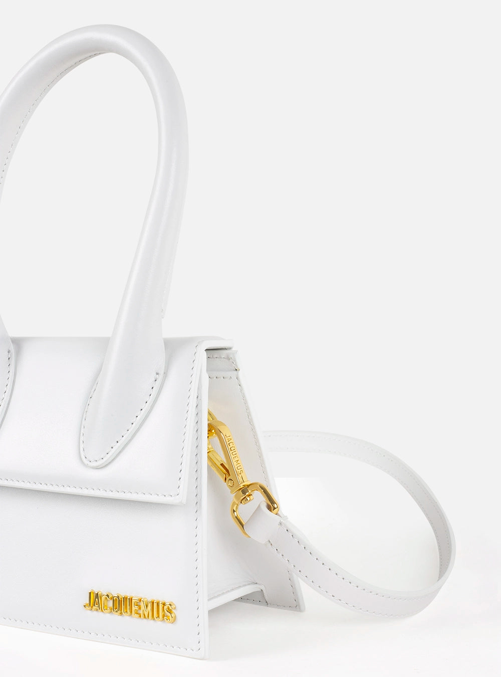 Il Chiquito Money in pelle di vitello bianca con logo dorato in rilievo. Battente con chiusura magnetica, manico rigido ad arco e tracolla rimovibile. Interno compatto con tasca a soffietto.