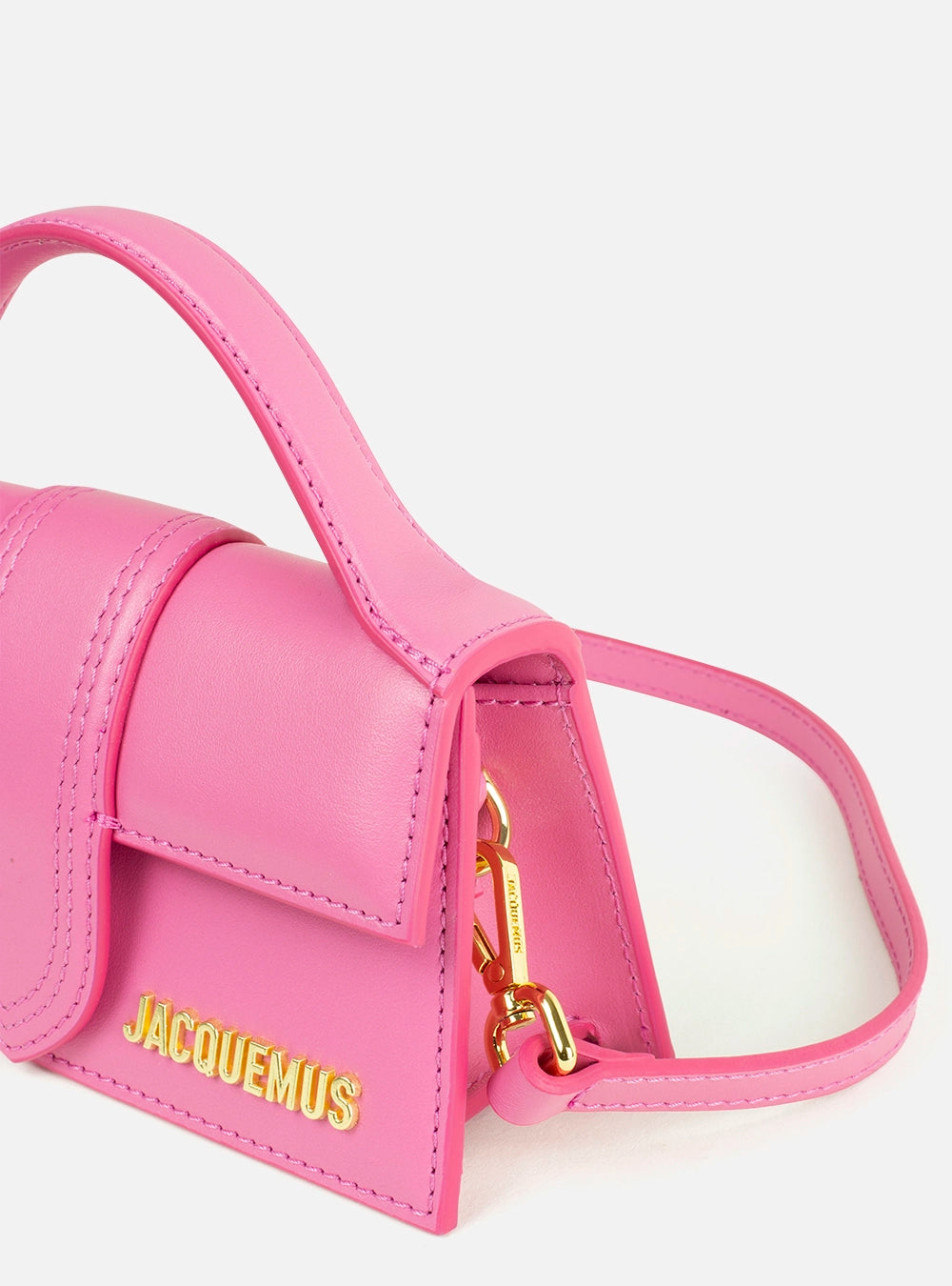 Le Bambino in pelle di vitello rosa chiaro con logo dorato in rilievo. Battente con chiusura magnetica, manico rigido ad arco e tracolla rimovibile. Interno con tasca a soffietto.