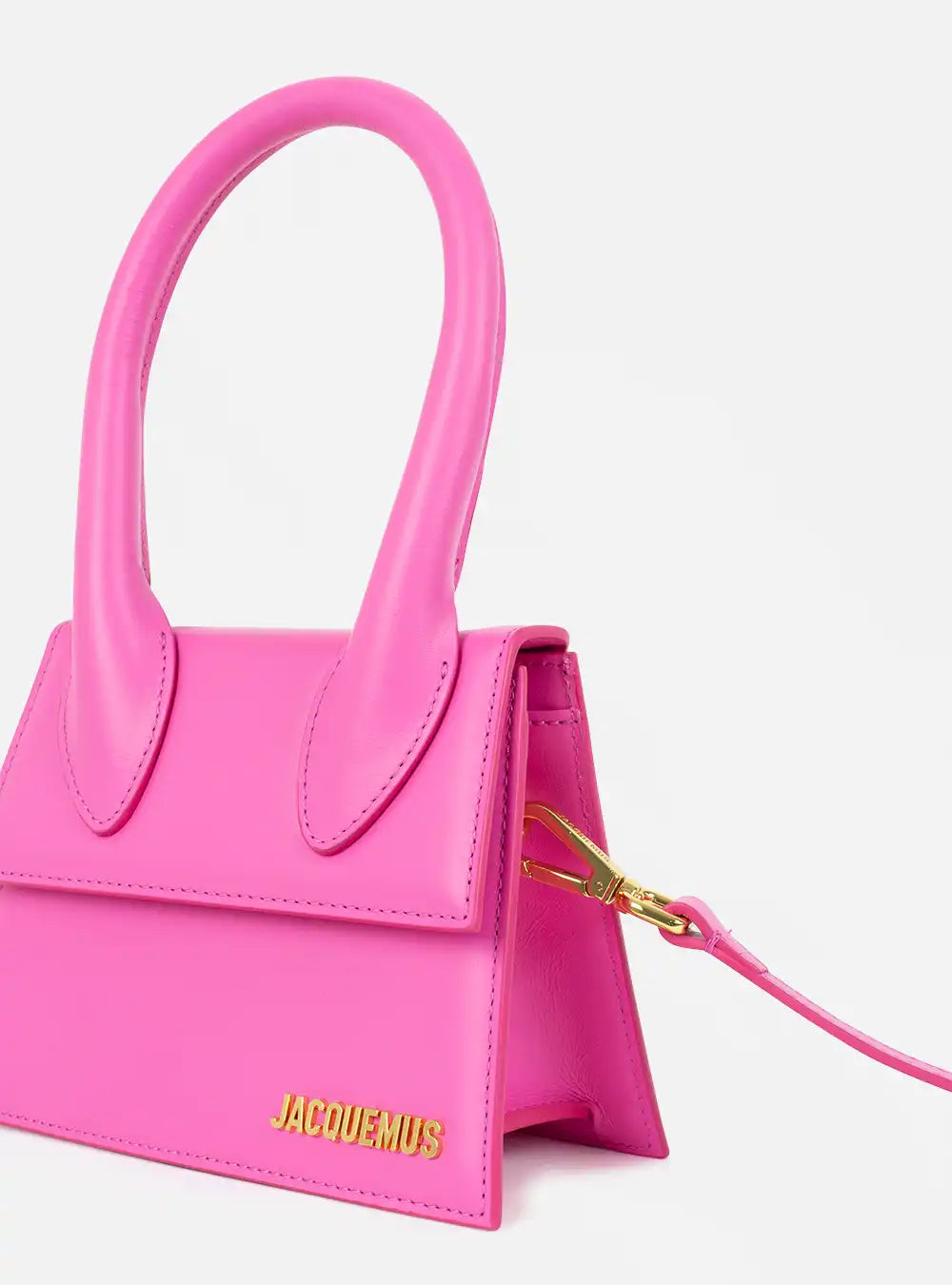 Il Chiquito Money in pelle di vitello rosa con logo dorato in rilievo. Battente con chiusura magnetica, manico rigido ad arco e tracolla rimovibile. Interno compatto con tasca a soffietto.