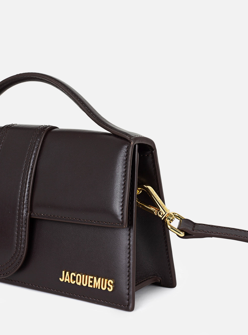 Le Grand Bambino in pelle di vitello marrone con logo dorato in rilievo. Battente con chiusura magnetica, manico piatto e tracolla rimovibile. Interno con tasca a soffietto.