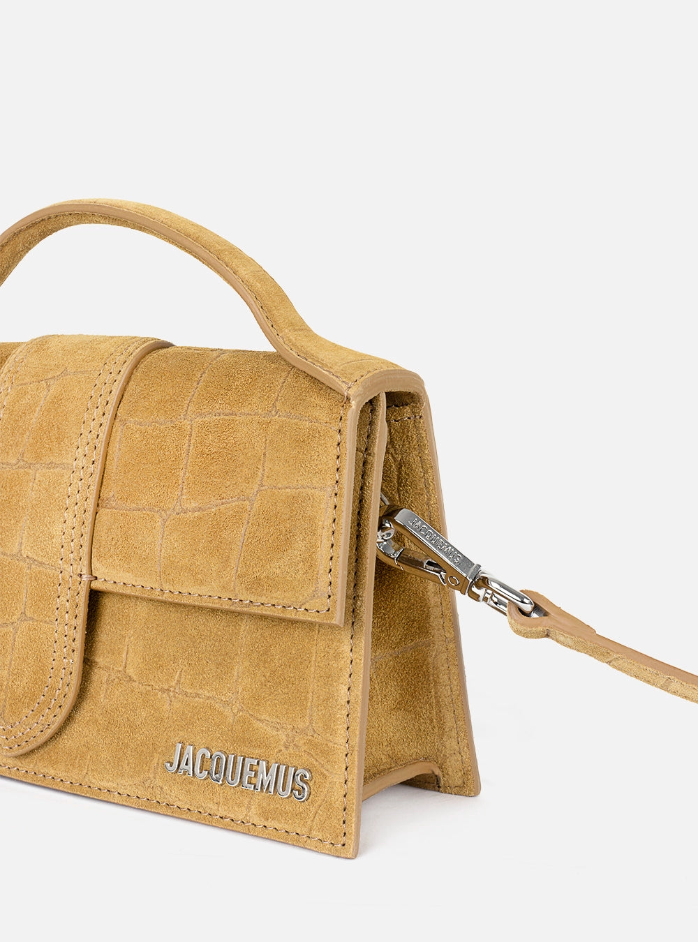 Le Grand Bambino in pelle di vitello marrone con logo argentato in rilievo. Battente con chiusura magnetica, manico piatto e tracolla rimovibile. Interno con tasca a soffietto.