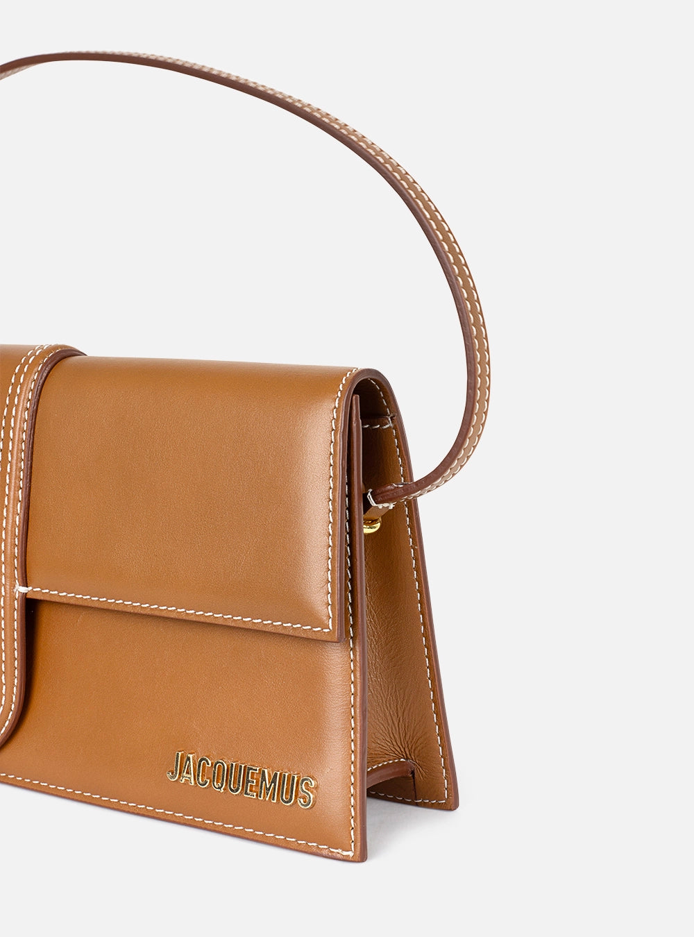 Le Bambino long in pelle di vitello castano con logo dorato in rilievo. Battente con chiusura magnetica e tracolla. Interno con tasca a soffietto.
