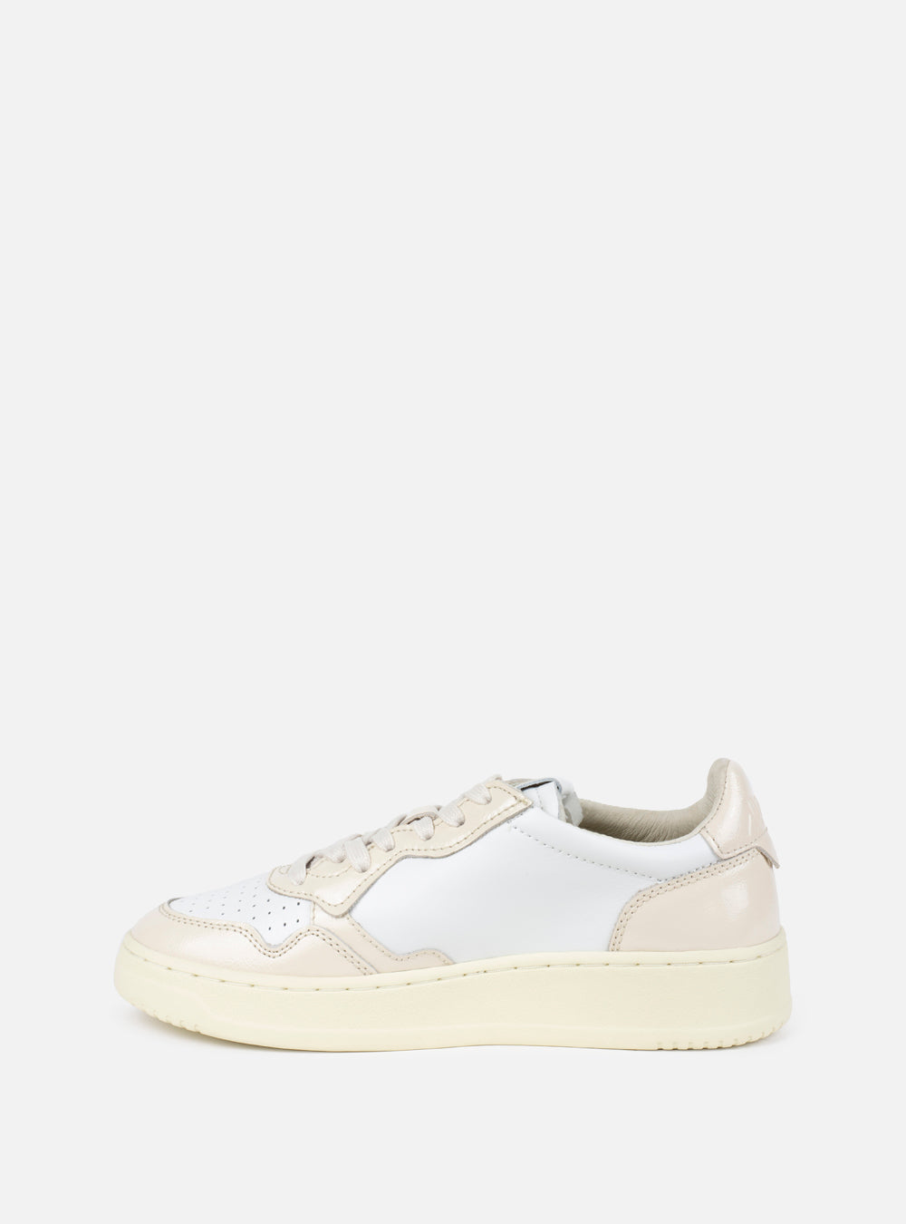 Sneakers medalist low in pelle bianca e dettagli in rosa lucido. Tomaia in pelle, punta con microfori