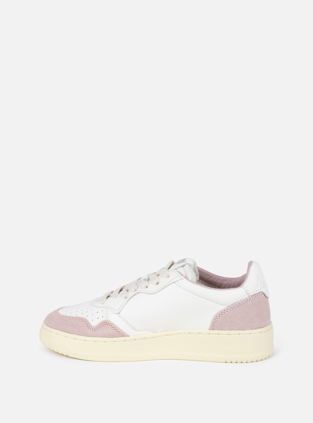 Sneakers medalist low in pelle bianca con dettagli in rosa camoscio. Tomaia in pelle, punta con microfori