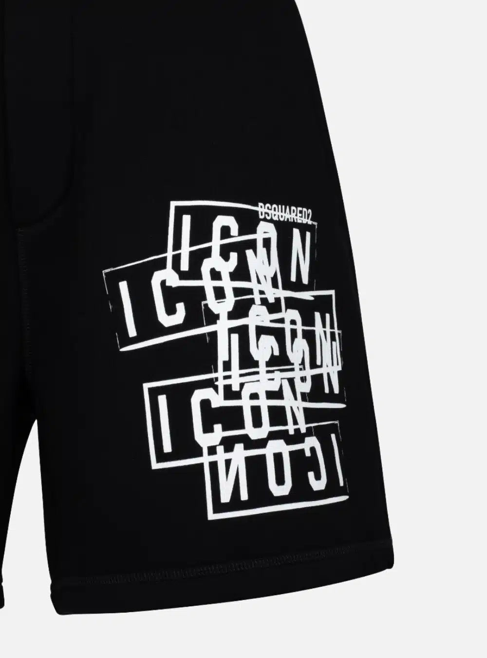 Bermuda nero che presenta un elastico in vita con coulisse, motivo del logo Icon stampato in bianco, due tasche anteriori e due tasche posteriori.