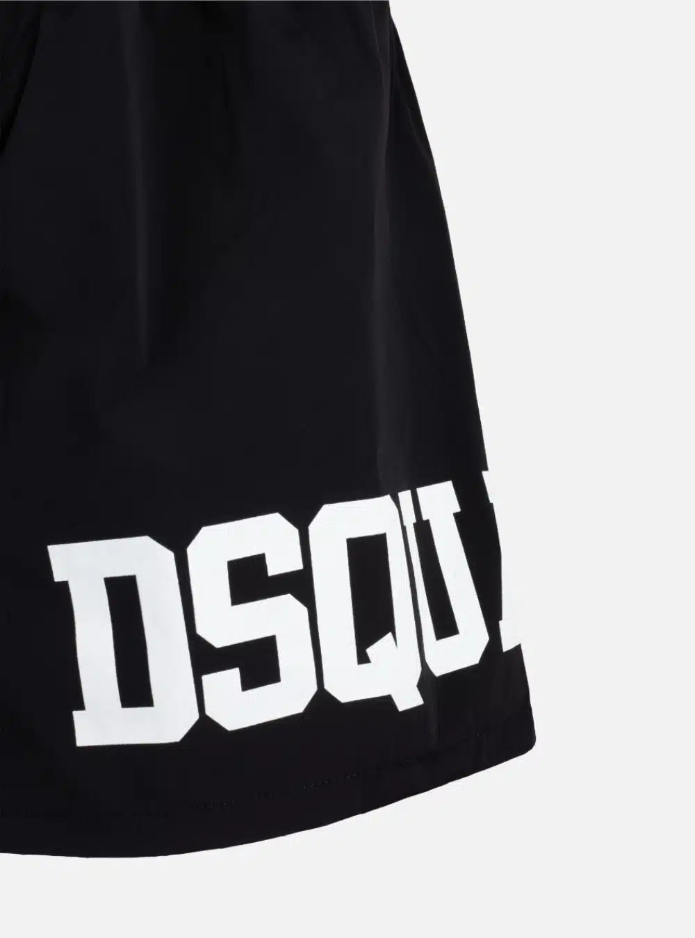 Costume da bagno nero con stampa, chiusura con coulisse e due tasche laterali a fessura.