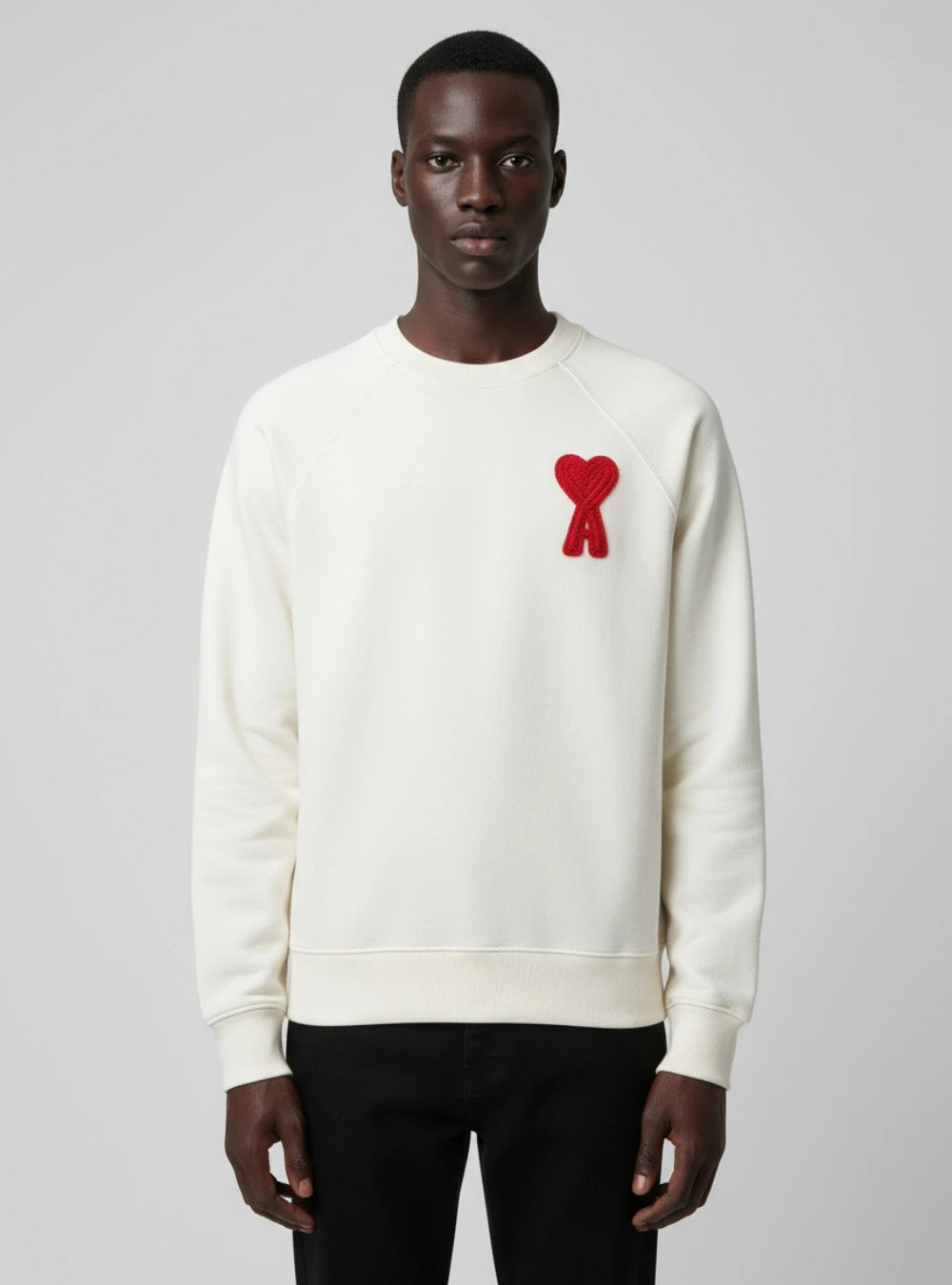 Felpa in cotone organico con maxi logo Ami de coeur. Girocollo e polsini a costine.