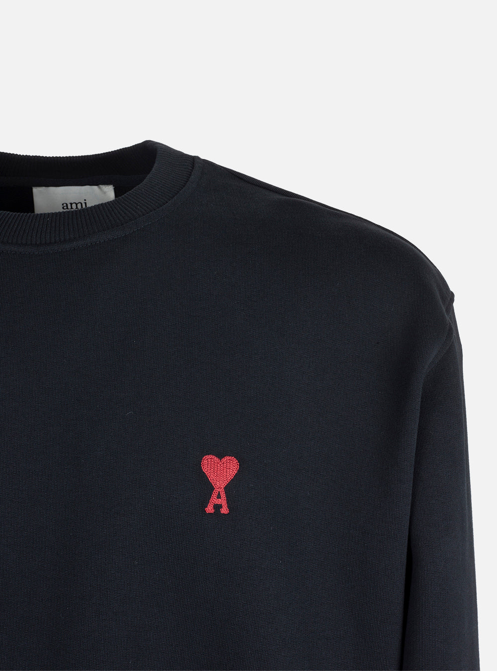 Felpa in cotone organico con logo Ami de coeur. Girocollo e polsini a costine.