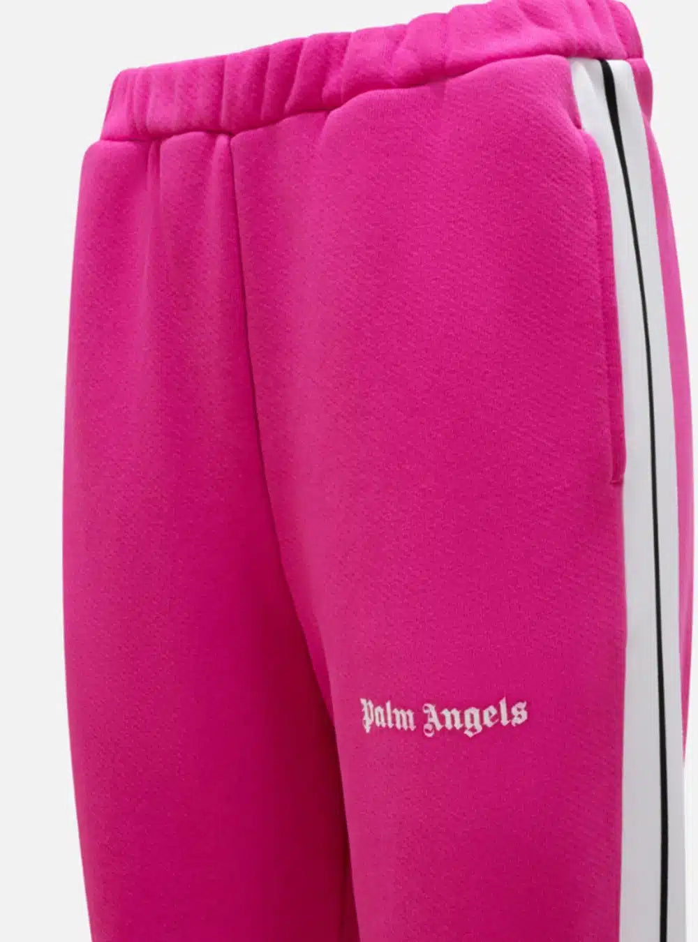 Pantalone banda rosa con logo stampato ,tasche frontali ed elastico in vita e sugli orli delle caviglie. Fasce bianche lungo i lati.
