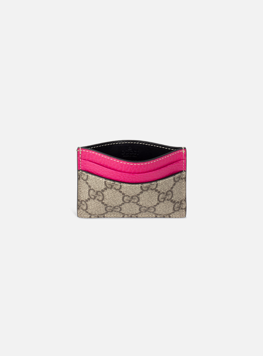 Portacarte GG supreme in canvas, con dettagli in pelle rosa. Cinque fessure per carte.