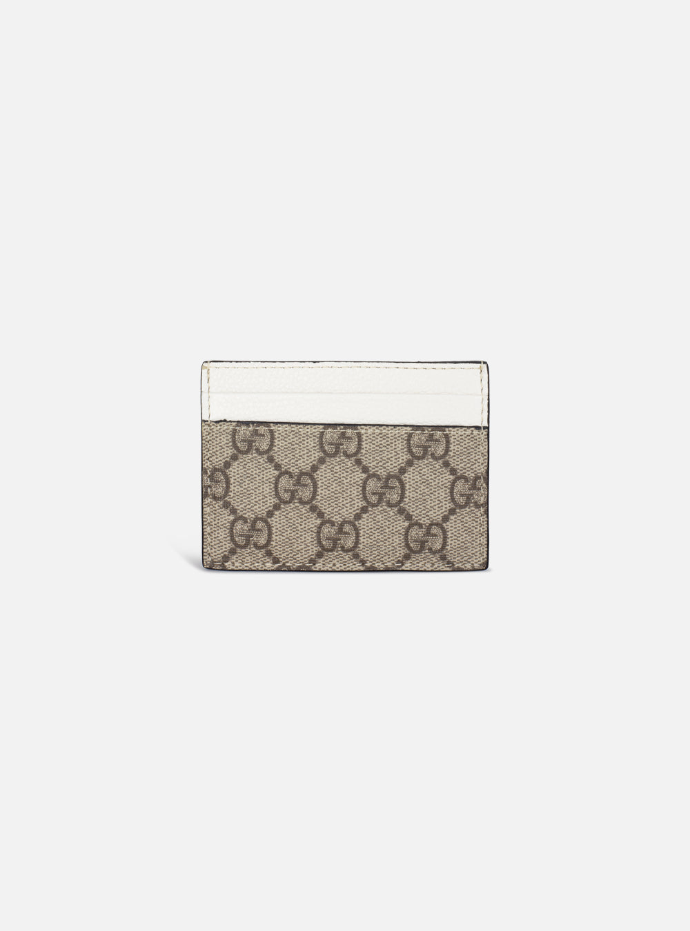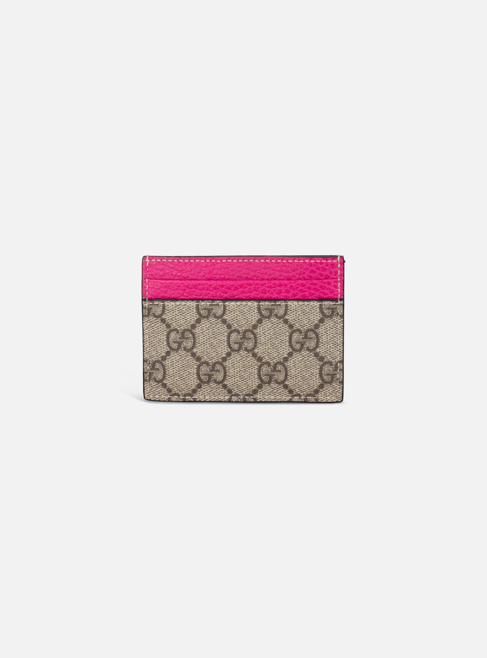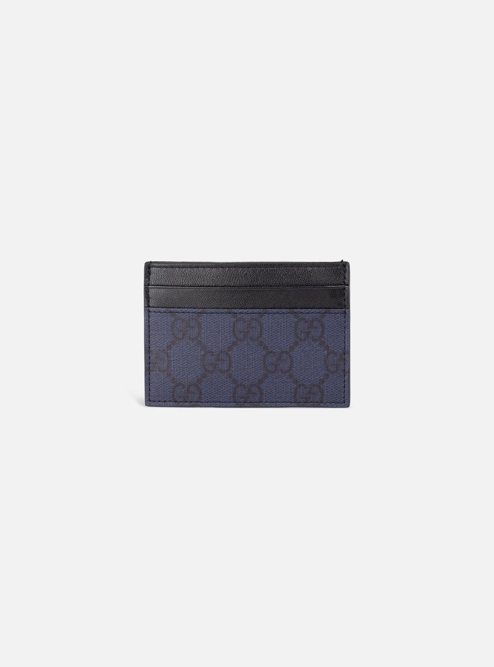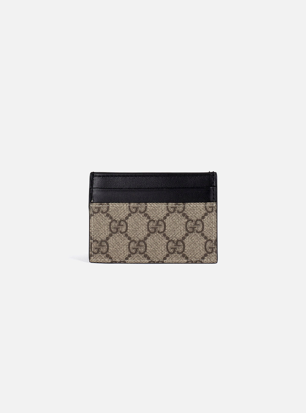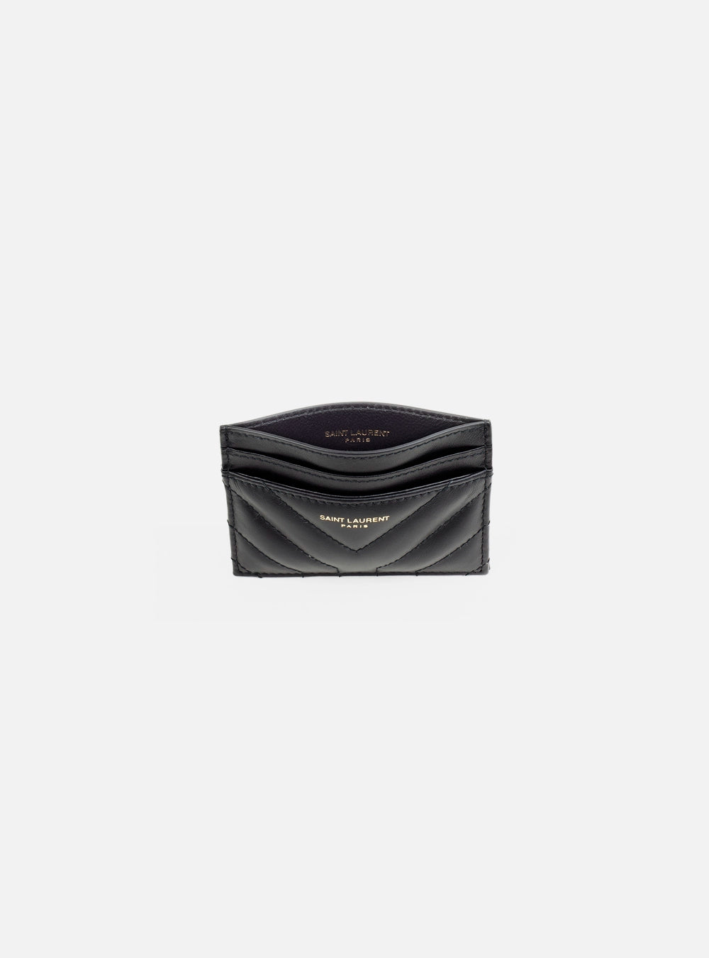 Portacarte in pelle di vitello nero, con logo dorato stampato. Cinque fessure per carte