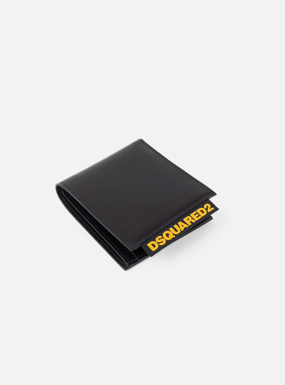 Portafoglio nero con etichetta logata. Realizzato completamente in pelle e con i classici scompartimenti per tessere, banconote e monete.