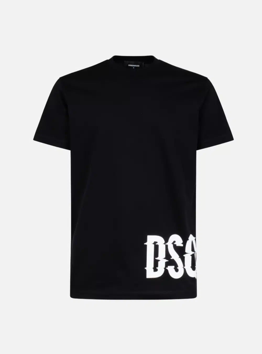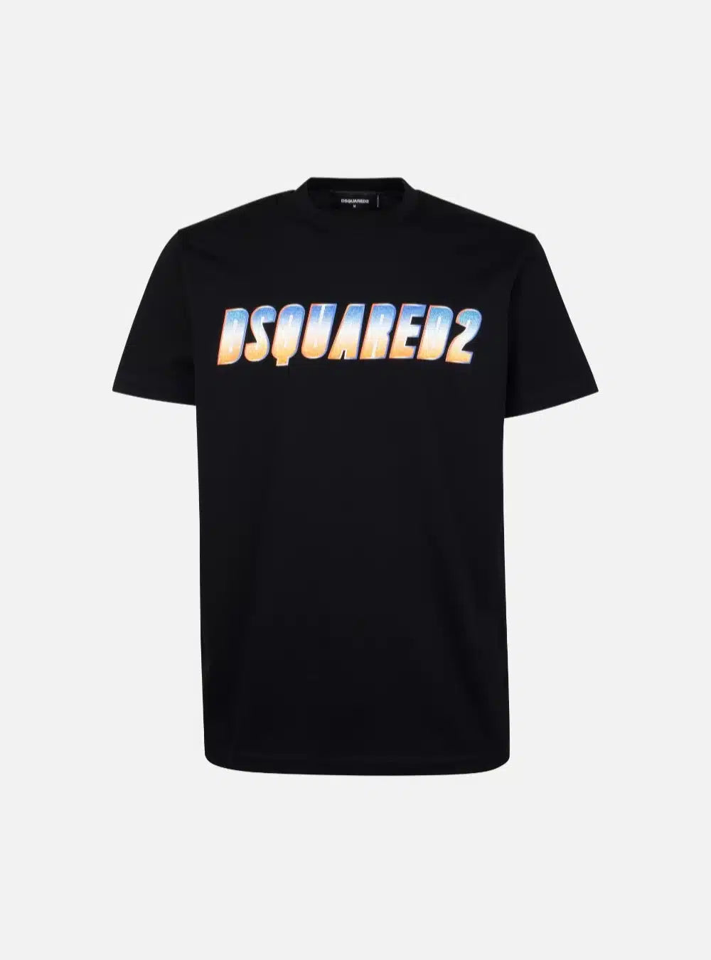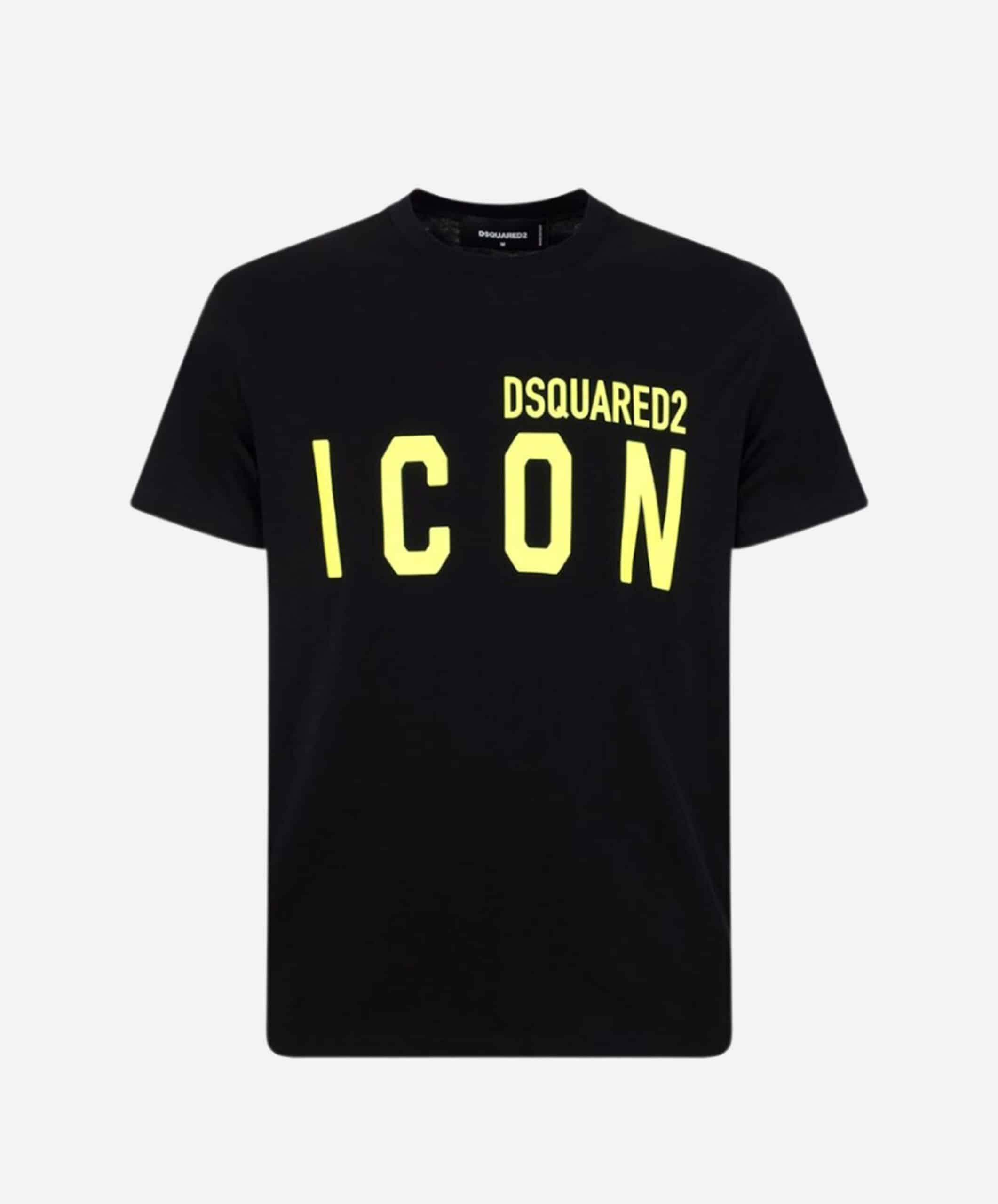 T-shirt nera girocollo con classico logo icon stampato in colorazione giallo fluo.