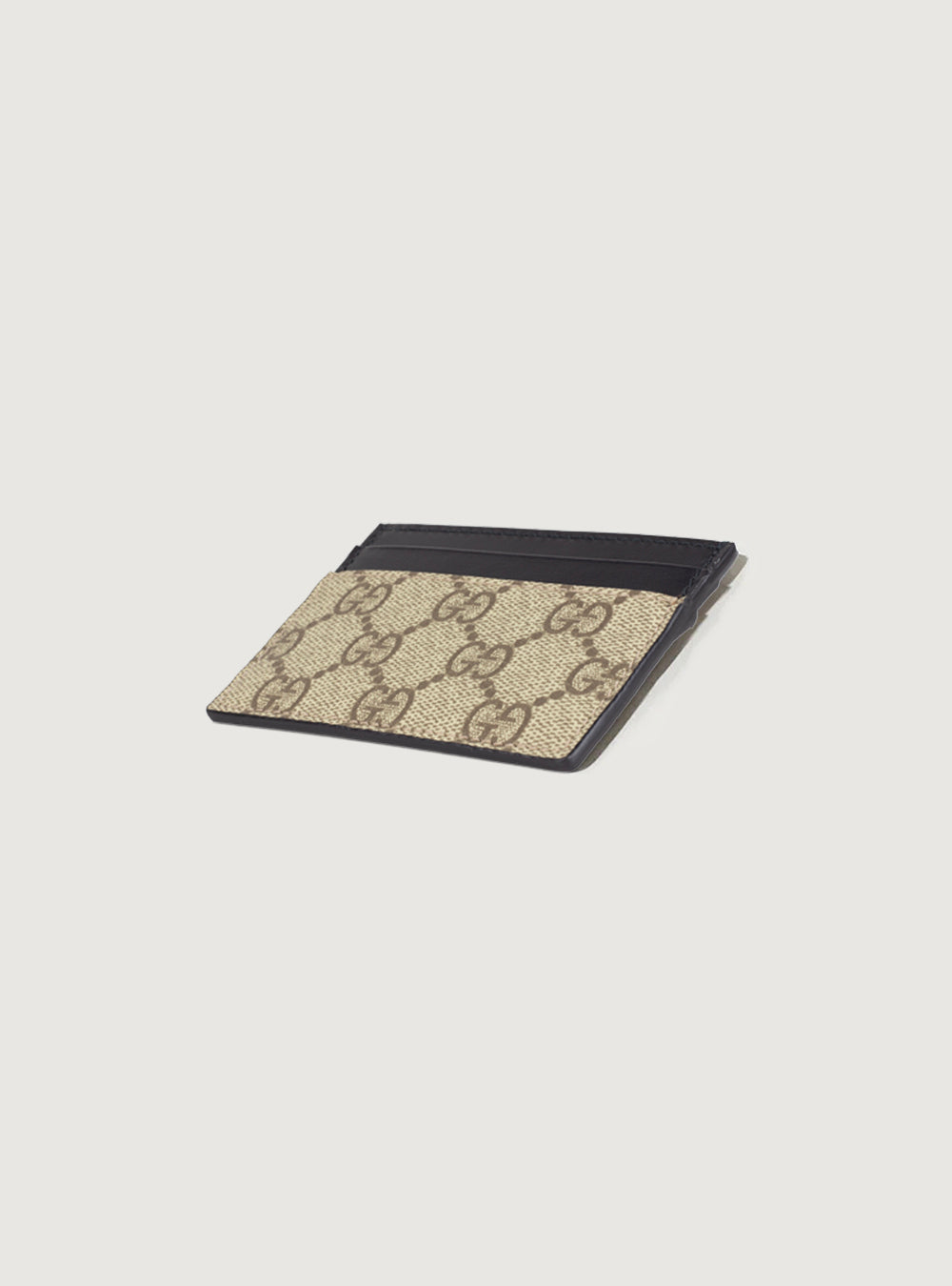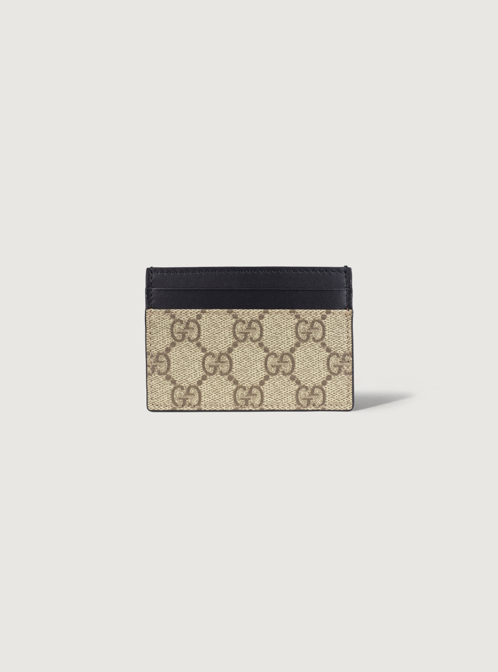 GG Supreme canvas card holder with black leather details. Five card slots.