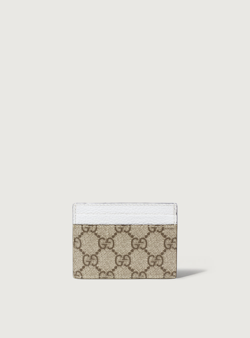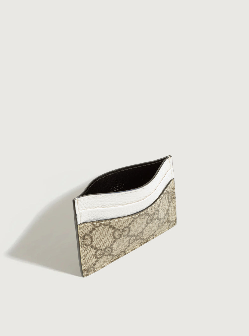GG Supreme canvas card holder with white leather details. Five card slots. *Without its box and dustbag*