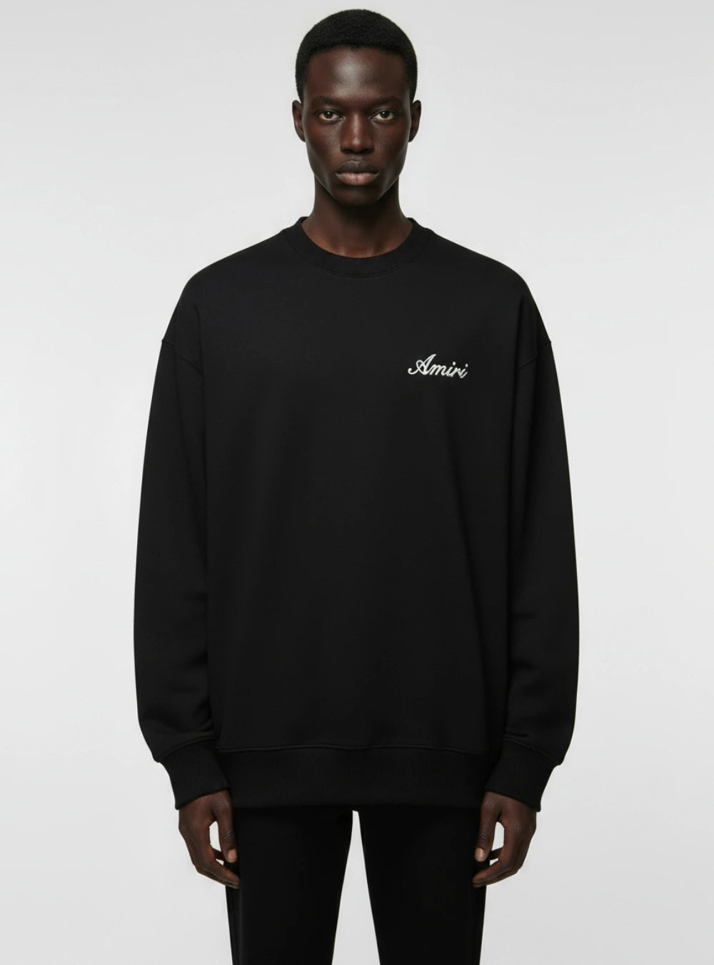 Felpa in cotone con logo in corsivo interamente ricamato sul fronte. Il motivo si ripete sul retro in versione maxi, arricchito da un dettaglio hardware del logo sull’orlo e da un mini monogramma sul lato opposto. Rifinita con girocollo, polsini e orlo dritto