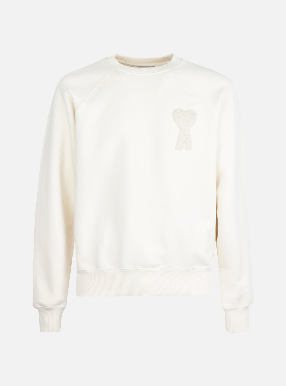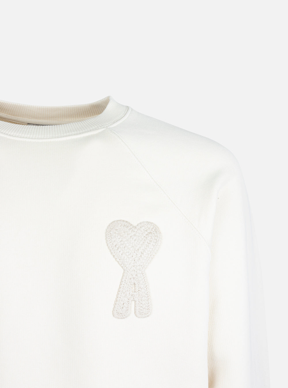 Felpa in cotone organico con maxi logo Ami de coeur. Girocollo e polsini a costine.