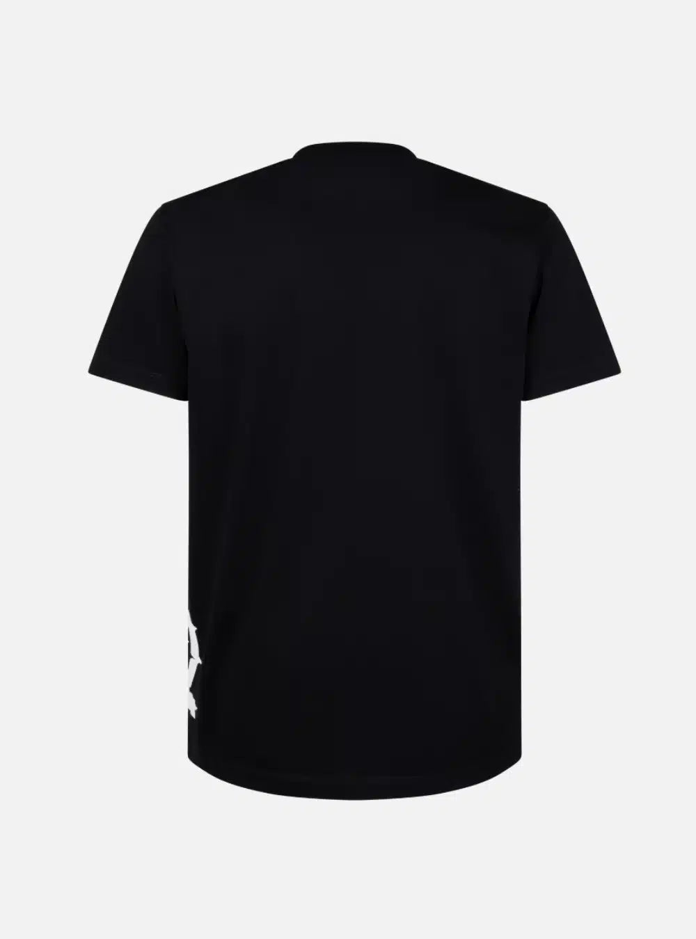 T-shirt nera con lettering stampato sul lato, collo rotondo e orlo dritto.